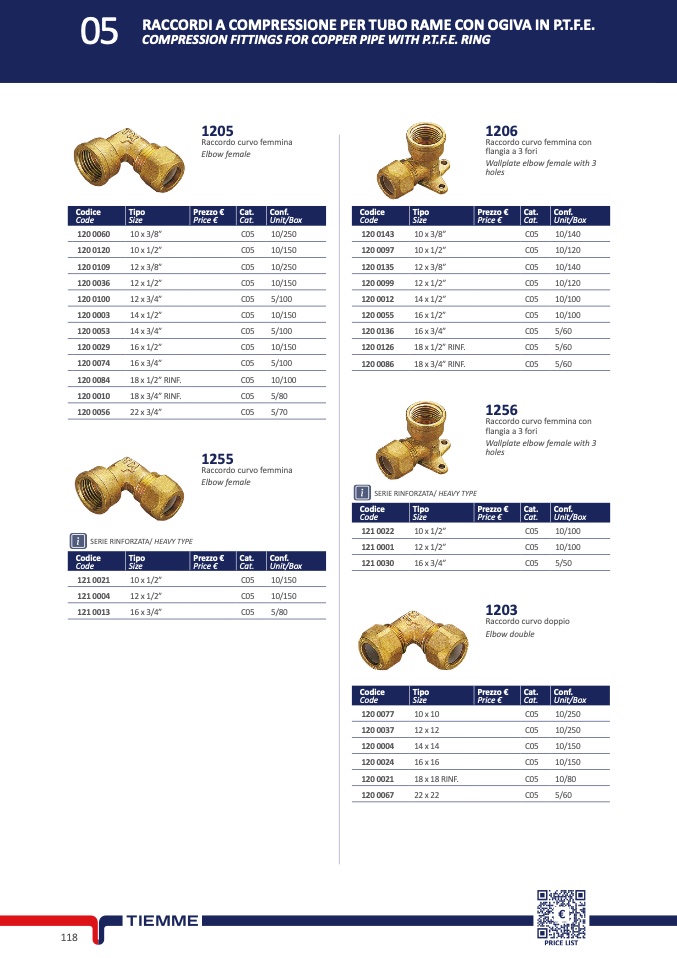 RACCORDI A COMPRESSIONE PER TUBO RAME CON OGIVA IN P.T.F.E.