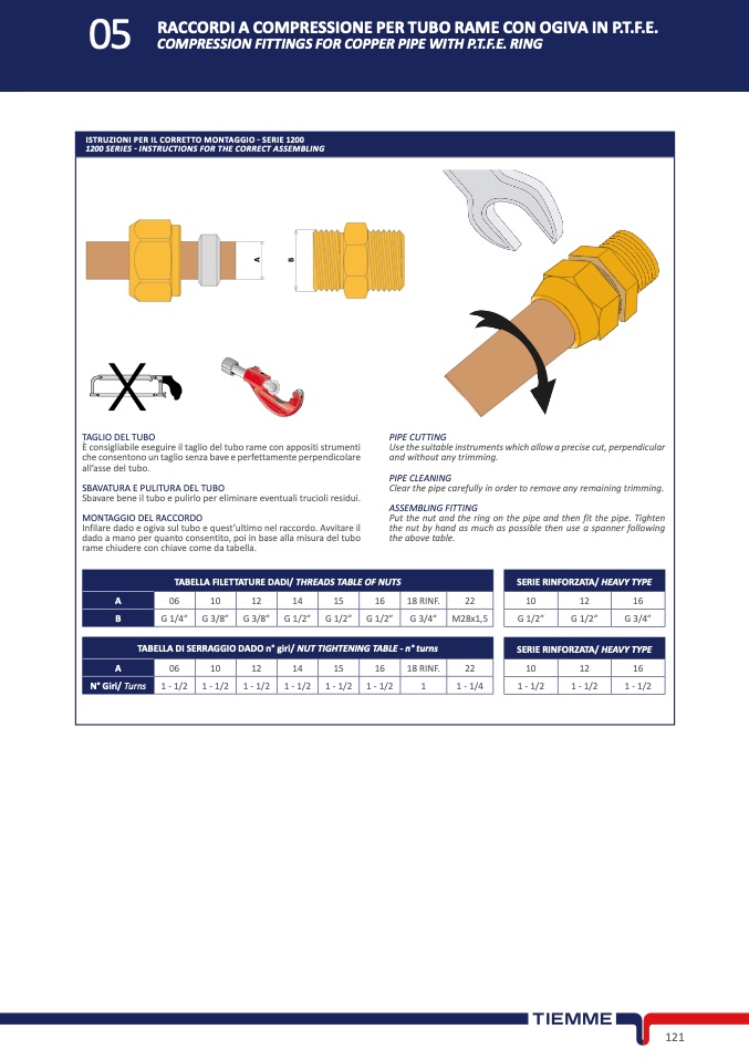 05RACCORDI A COMPRESSIONE PER TUBO RAME CON OGIVA IN P.T.F.E