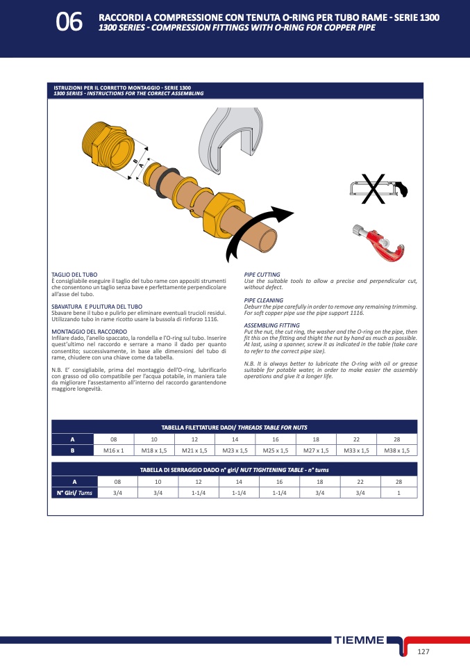 N.B. E’ consigliabile, prima del montaggio dell’O-ring, lubrificarl