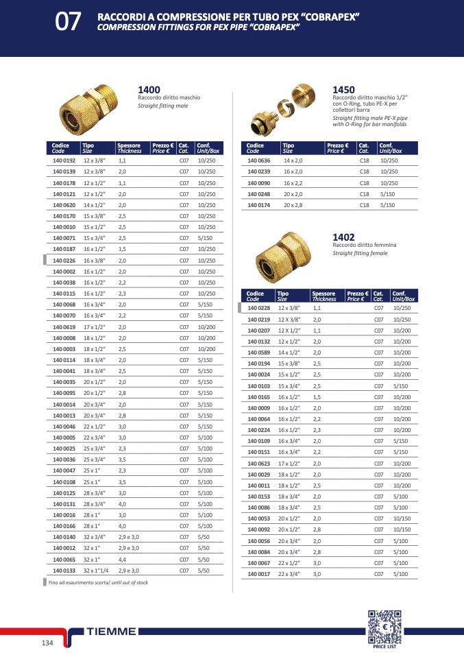 COMPRESSION FITTINGS FOR PEX PIPE “COBRAPEX”