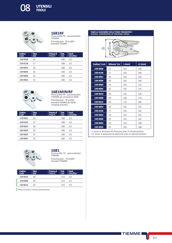 TABELLA INGOMBRI DELLE PINZE PRESSATRIC