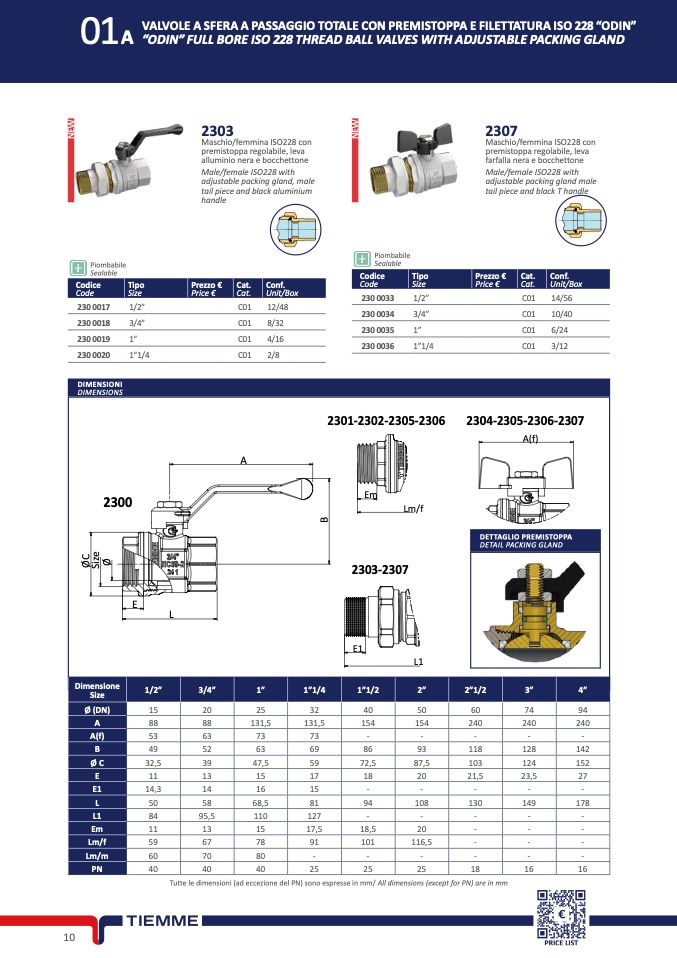 Tutte le dimensioni (ad eccezione del PN) sono espresse in mm/ All dimensions (except for PN) are in mm