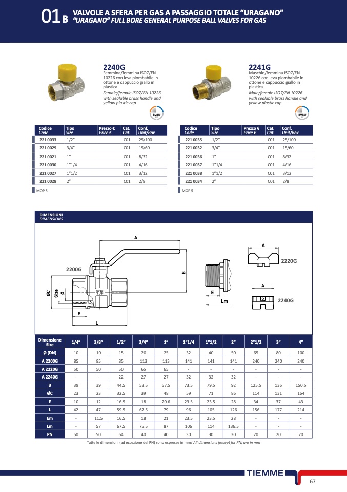 Tutte le dimensioni (ad eccezione del PN) sono espresse in mm/ All dimensions (except for PN) are in mm