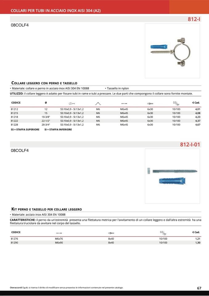 COLLARI PER TUBI IN ACCIAIO INOX AISI 304 (A2)
