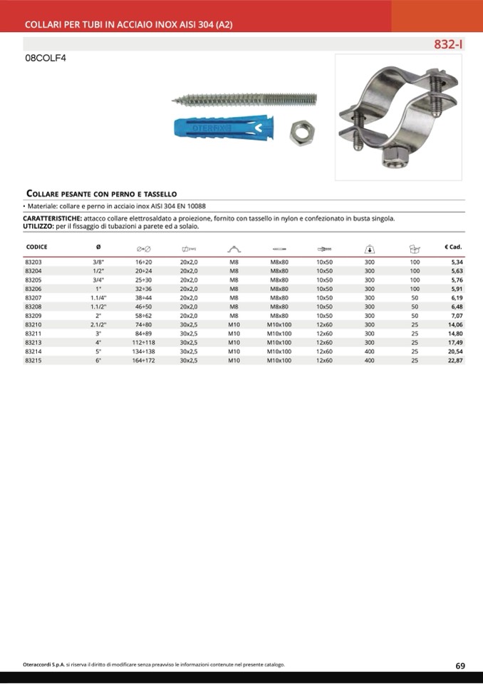 COLLARI PER TUBI IN ACCIAIO INOX AISI 304 (A2)
