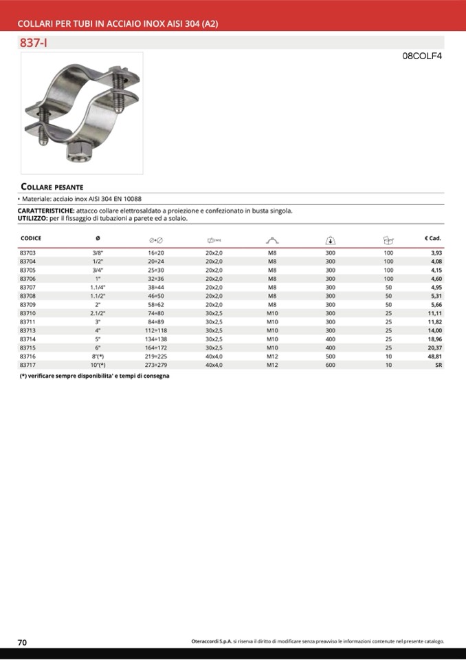COLLARI PER TUBI IN ACCIAIO INOX AISI 304 (A2)