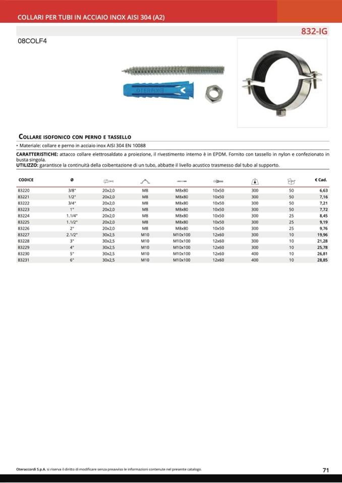 COLLARI PER TUBI IN ACCIAIO INOX AISI 304 (A2)