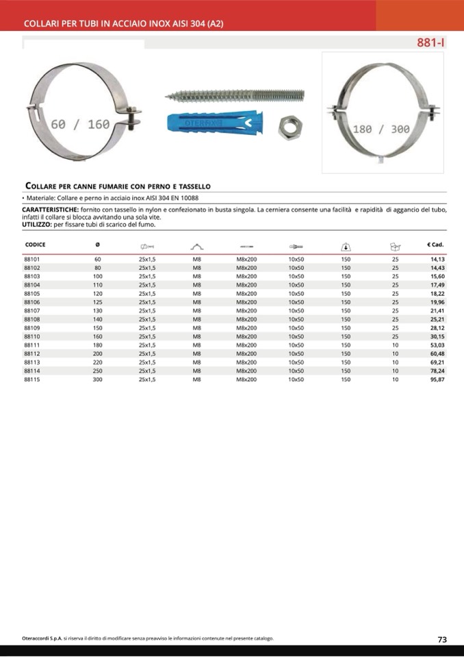 COLLARI PER TUBI IN ACCIAIO INOX AISI 304 (A2)