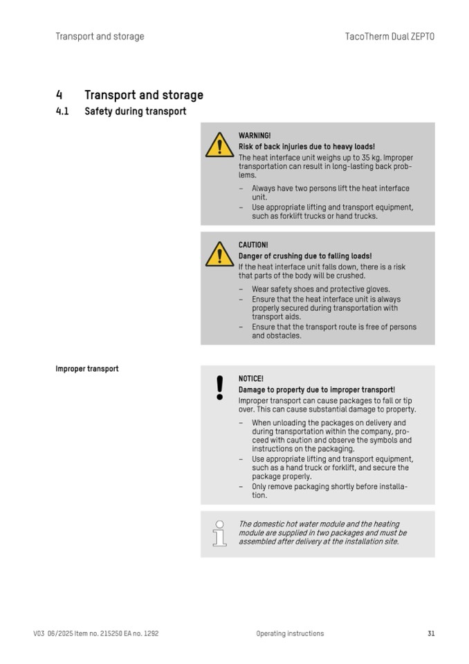 The heat interface unit weighs up to 35 kg. Improper