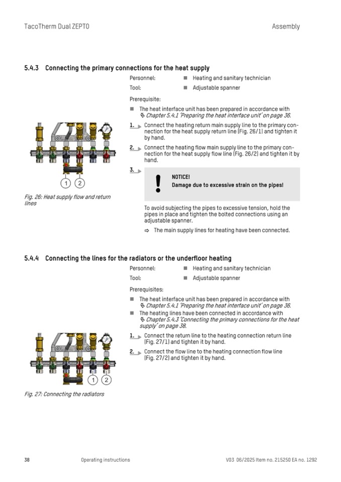 nection for the heat supply flow line (Fig. 26/2) and tighten it by