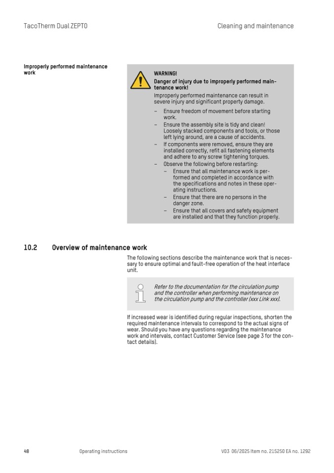 sary to ensure optimal and fault-free operation of the heat interface