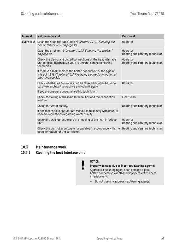 Clean the heat interface unit ( Ä Chapter 10.3.1 ‘Cleaning the