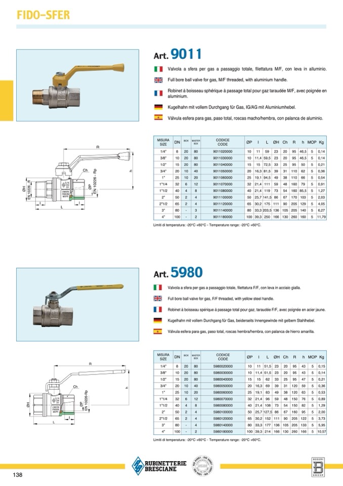 Valvola a sfera per gas a passaggio totale,