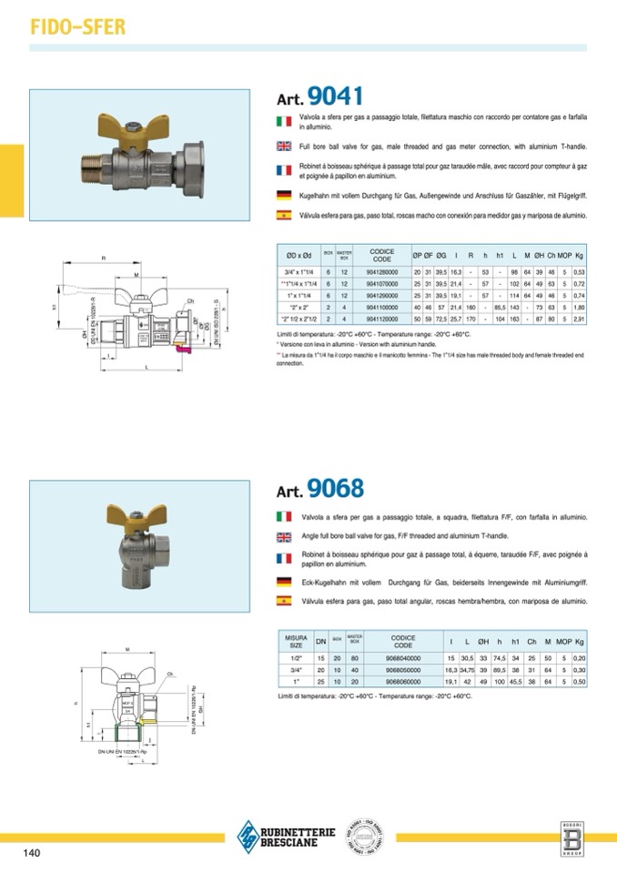 ** La misura da 1”1/4 ha il corpo maschio e il manicotto femmina - The 1”1/4 size has male threaded body and female threaded en