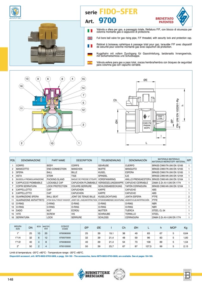 Limiti di temperatura: -20°C +60°C - Temperature range: -20°C +60°C