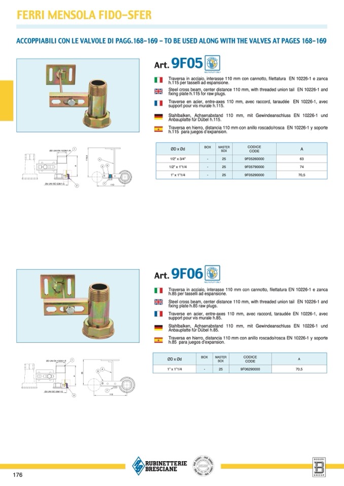 Traversa in acciaio, interasse 110 mm con cannotto, filettatura EN 10226-1 e zanc