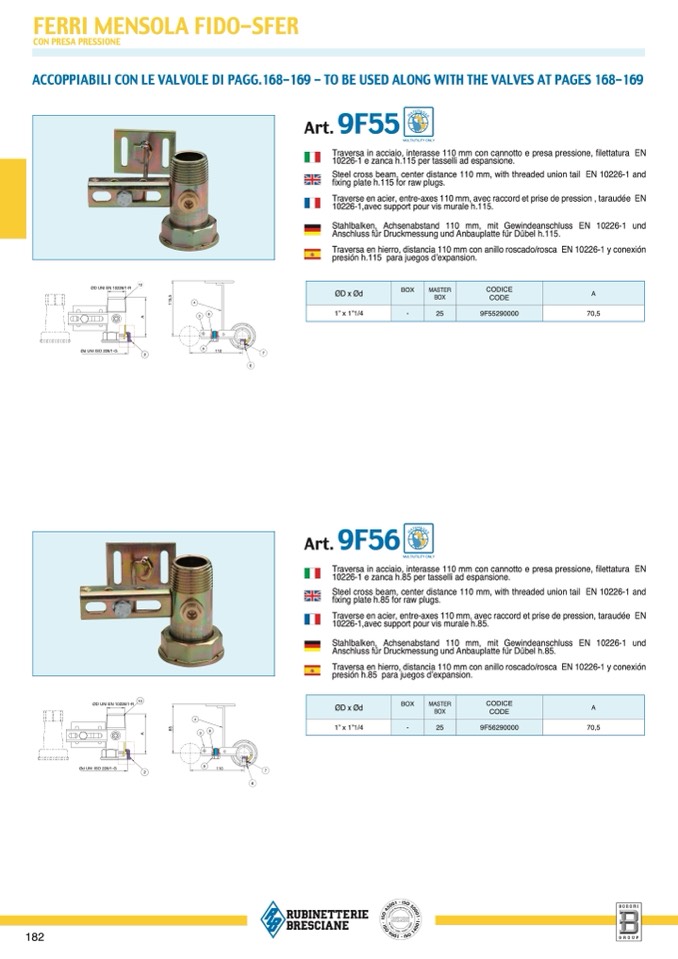 ACCOPPIABILI CON LE VALVOLE DI PAGG.168-169 - TO BE USED ALONG WITH THE VALVES AT PAGES 168-169