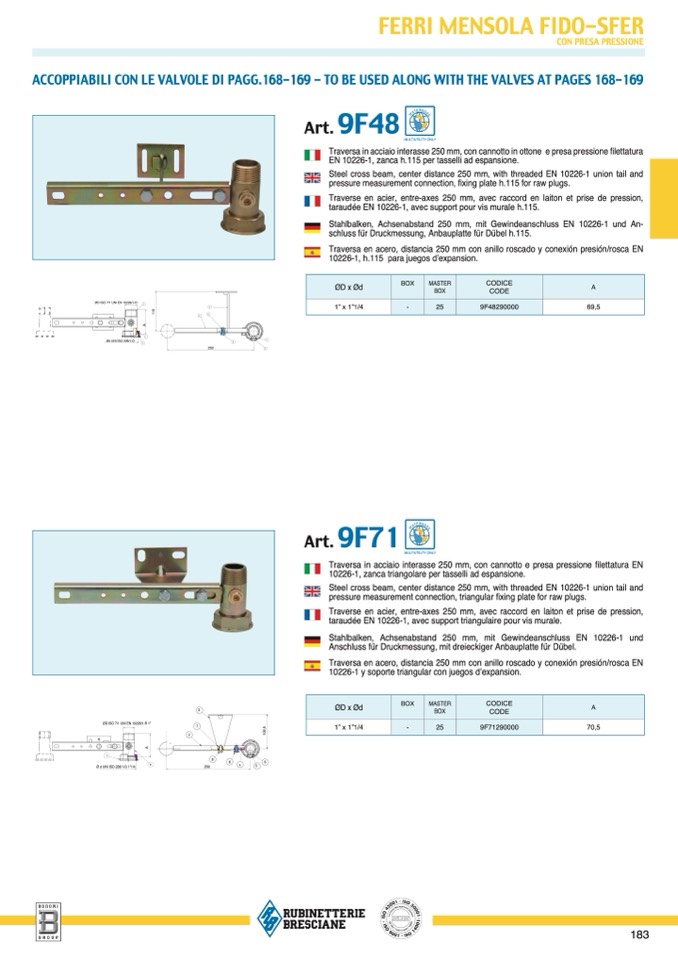 Traversa in acciaio interasse 250 mm, con cannotto e presa pressione filettatura E