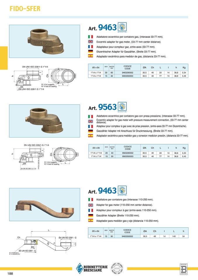 Adattatore eccentrico per contatore gas con presa pressione, (interasse 33-77 mm).