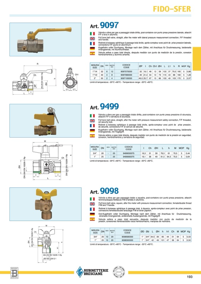 Valvola a sfera per gas a passaggio totale diritta, post-contatore con punto presa pressione di sicurezza,