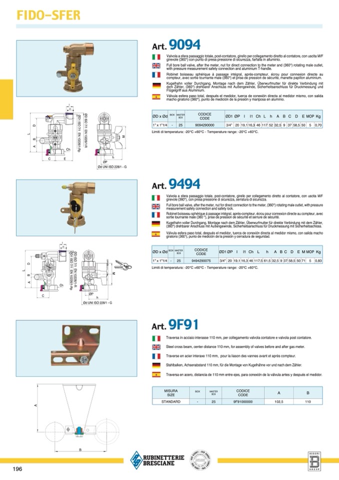 Valvola a sfera passaggio totale, post-contatore, girello per collegamento diretto al contatore, con uscita M/