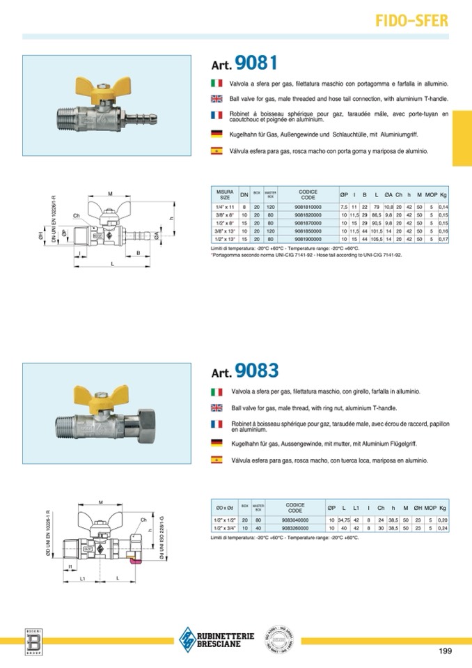 Limiti di temperatura: -20°C +60°C - Temperature range: -20°C +60°C.