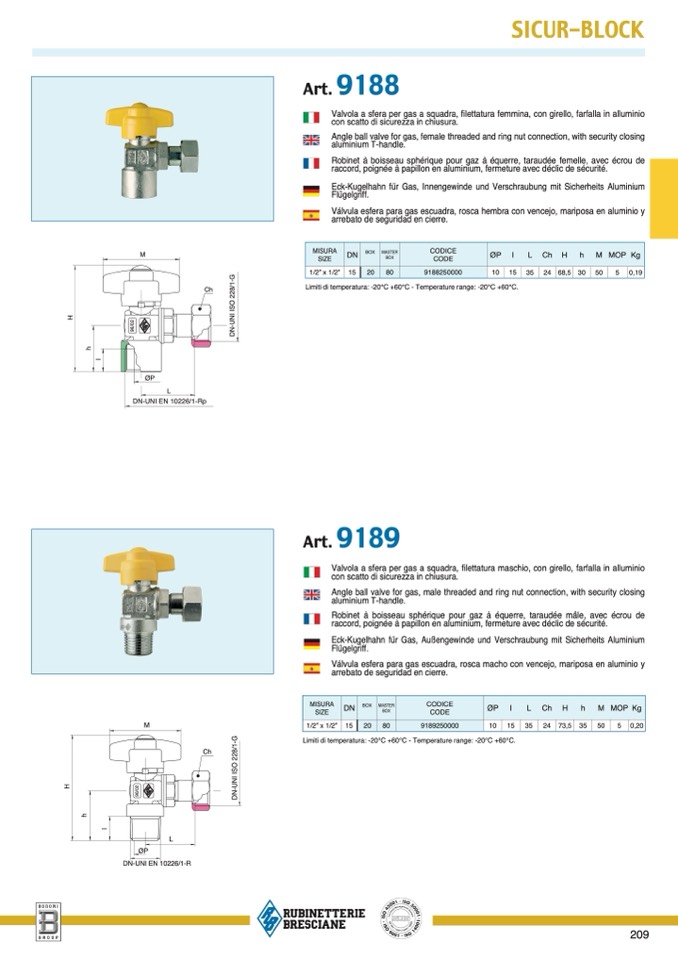 Limiti di temperatura: -20°C +60°C - Temperature range: -20°C +60°C.