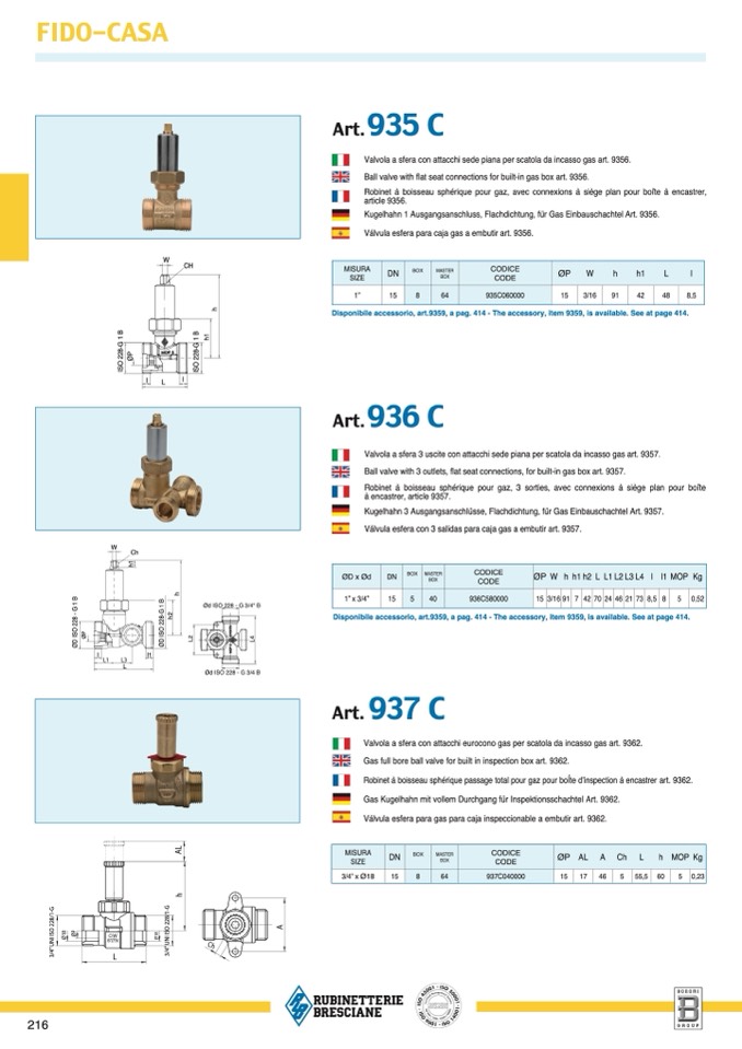 Válvula esfera para gas para caja inspeccionable a embutir art. 9362.