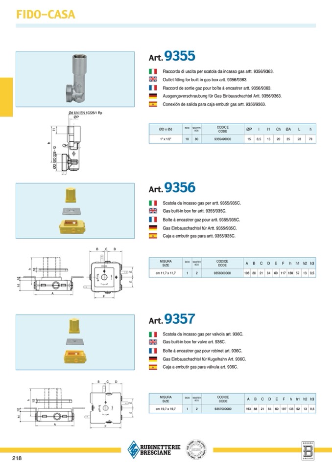 Boîte à encastrer gaz pour artt. 9355/935C.
