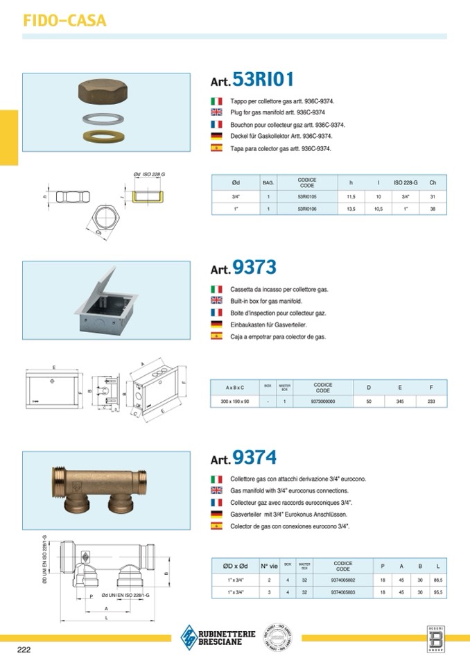 Tappo per collettore gas artt. 936C-9374.
