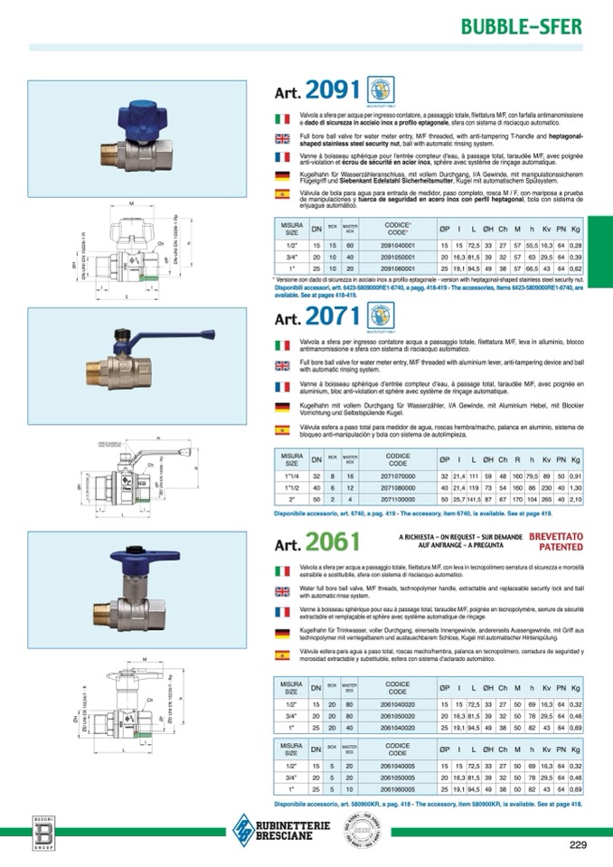 Valvola a sfera per acqua per ingresso contatore, a passaggio totale,