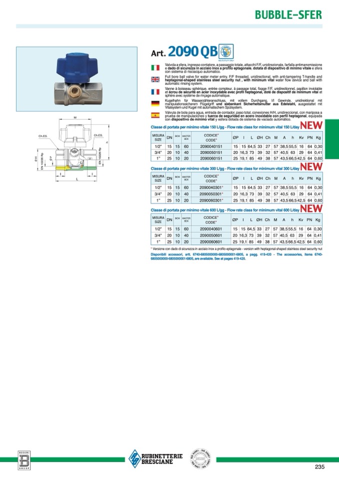 Valvola a sfera, ingresso contatore, a passaggio totale, attacchi F/F, unidirezionale, farfalla antimanomissione