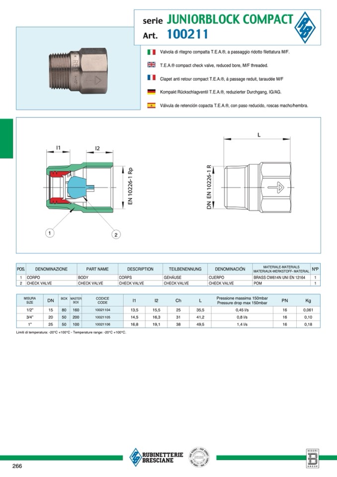 Valvola di ritegno compatta T.E.A.®, a passaggio ridotto filettatura M/F