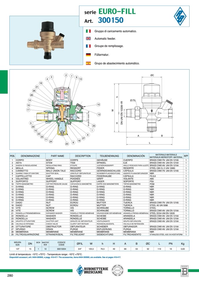 Limiti di temperatura: -10°C +70°C - Temperature range: -10°C +70°C