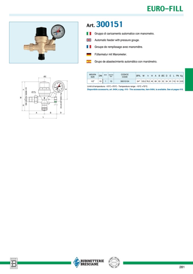 Gruppo di caricamento automatico con manometro.