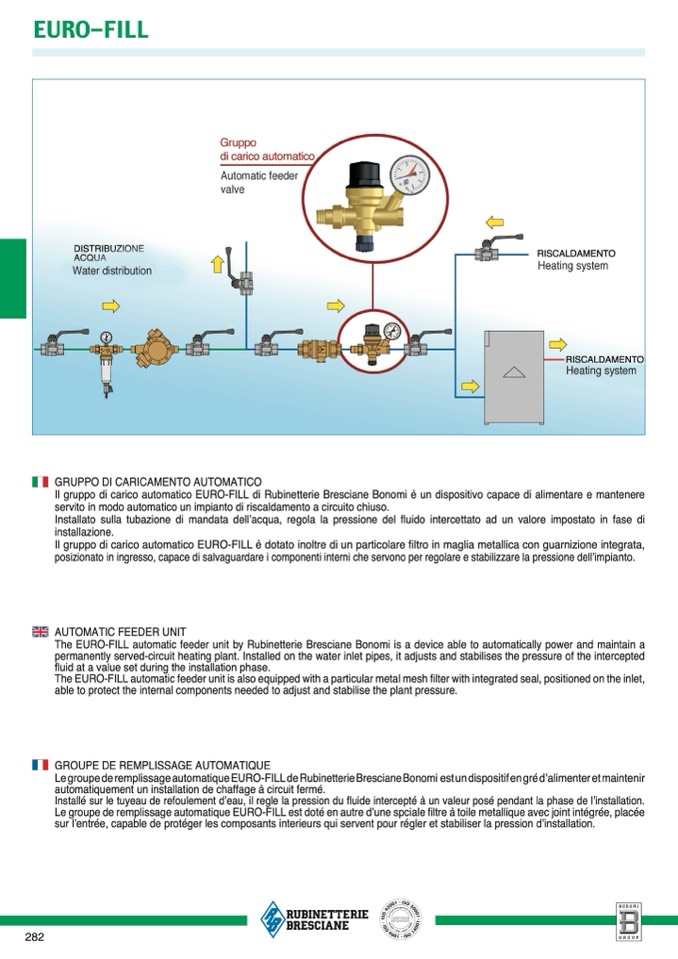 The EURO-FILL automatic feeder unit by Rubinetterie Bresciane Bonomi is a device able to automatically power and maintain