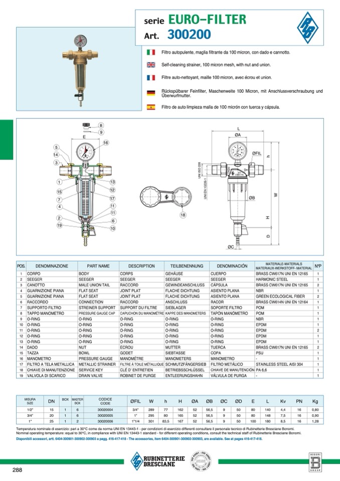 Temperatura nominale di esercizio: pari a 30°C come da norma UNI EN 13443-1 - per condizioni di esercizio differenti consultare il personale tecnico di Rubinetterie Bresciane Bonomi.