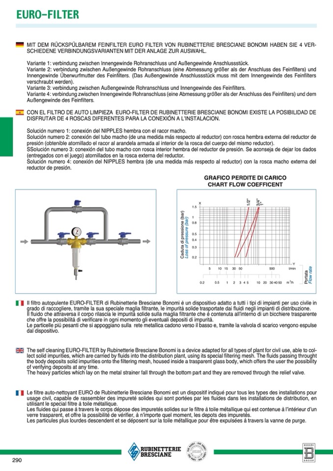 MIT DEM RÜCKSPÜLBAREM FEINFILTER EURO FILTER VON RUBINETTERIE BRESCIANE BONOMI HABEN SIE 4 VER-