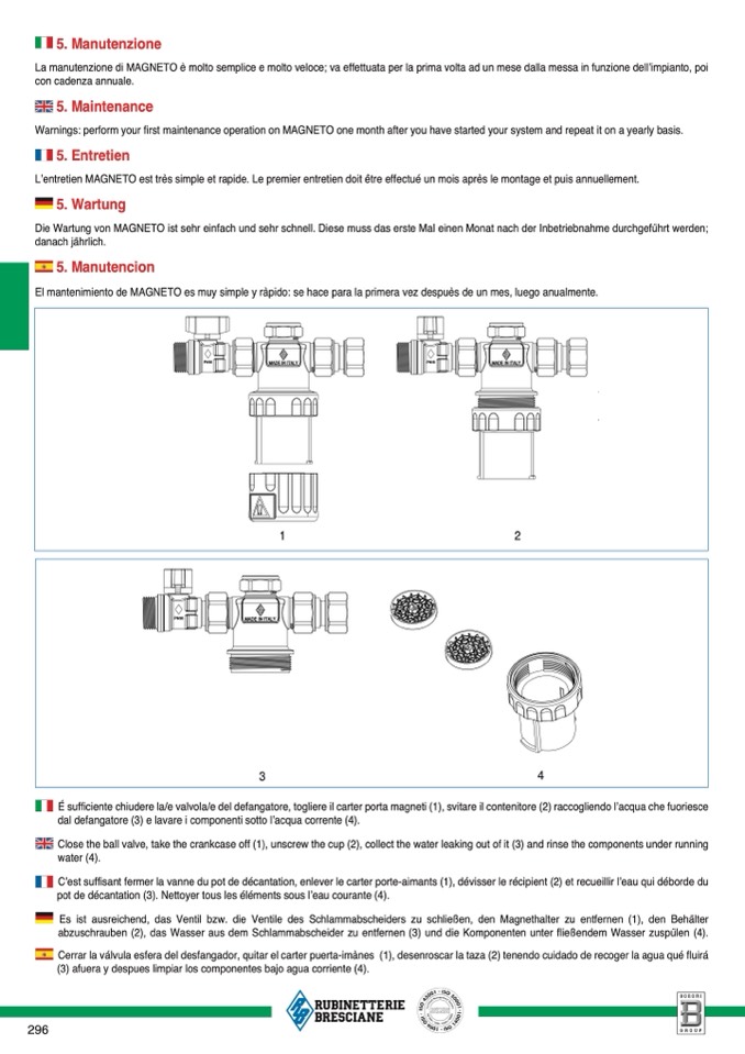 La manutenzione di MAGNETO è molto semplice e molto veloce; va effettuata per la prima volta ad un mese dalla messa in funzione dell’impianto, po