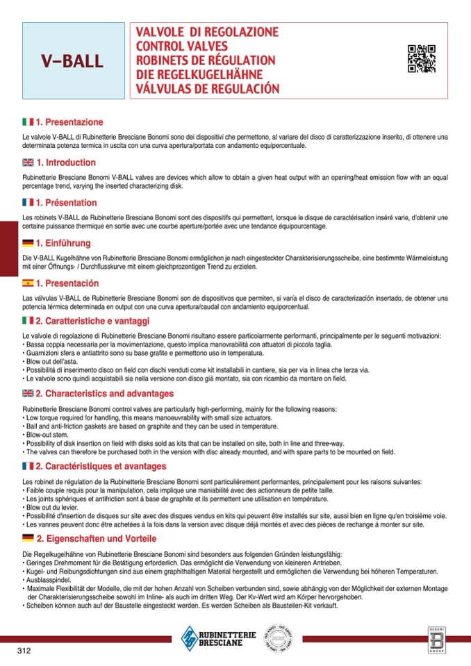 Las válvulas V-BALL de Rubinetterie Bresciane Bonomi son de dispositivos que permiten, si varía el disco de caracterización insertado, de obtener un