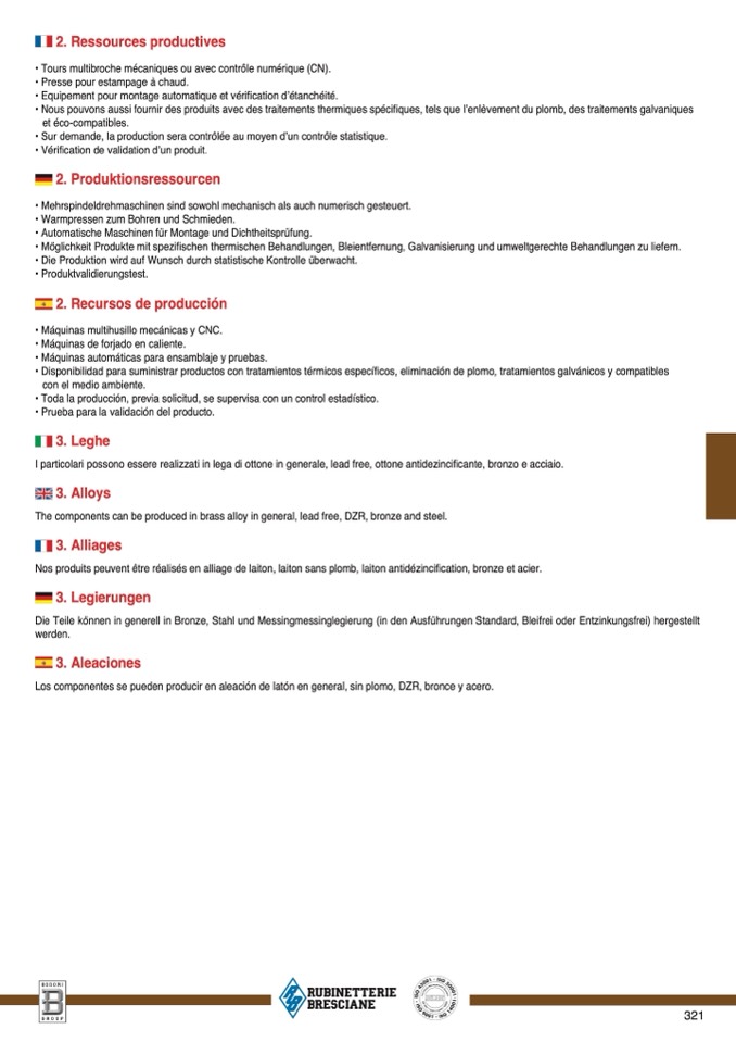 Los componentes se pueden producir en aleación de latón en general, sin plomo, DZR, bronce y acero