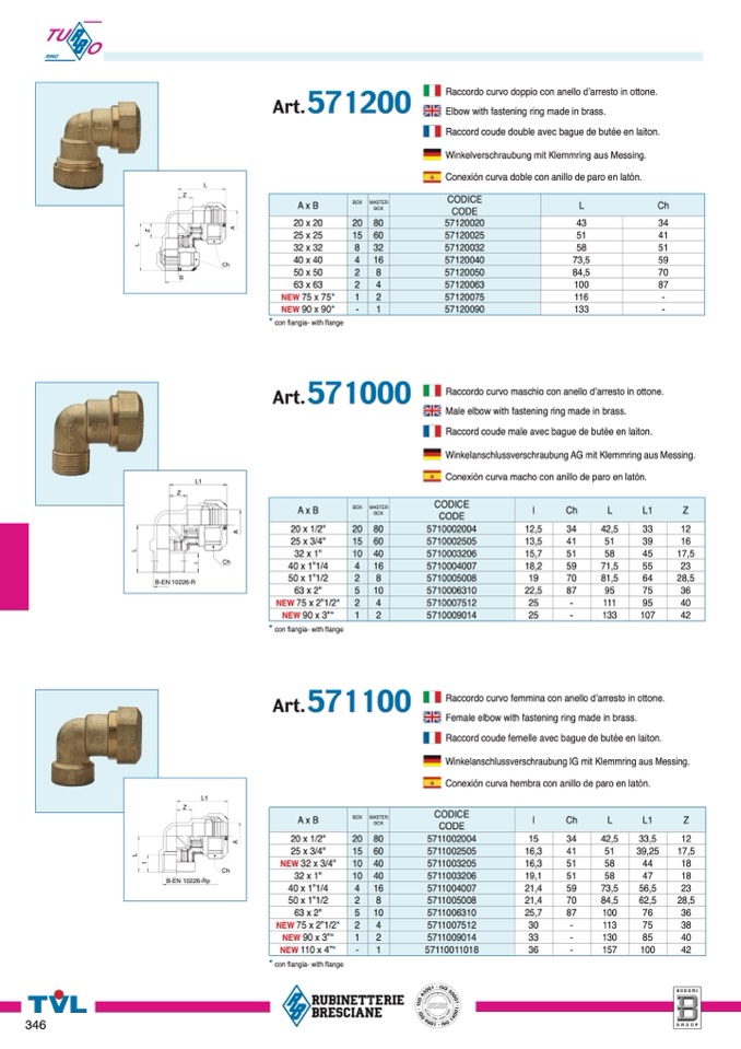 Elbow with fastening ring made in brass.
