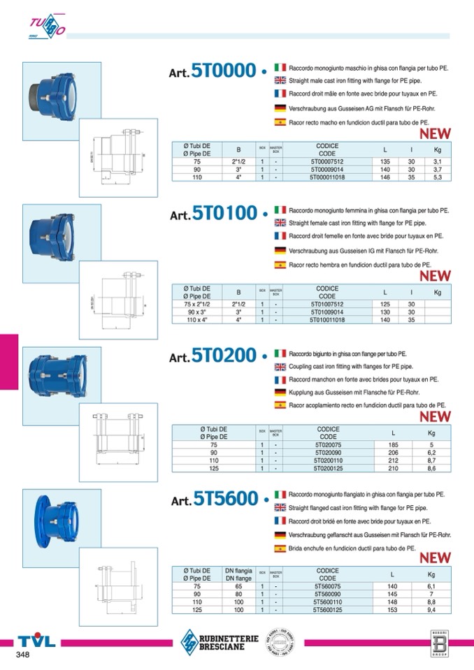 Racor acoplamiento recto en fundicion ductil para tubo de PE.