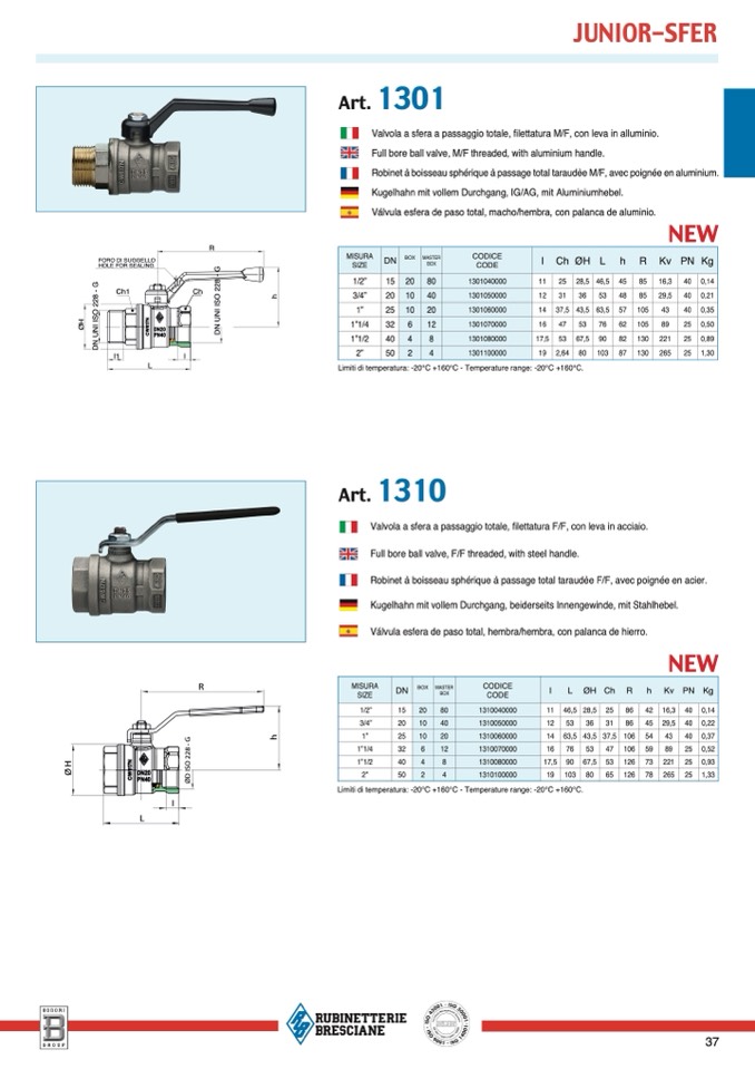 Limiti di temperatura: -20°C +160°C - Temperature range: -20°C +160°C