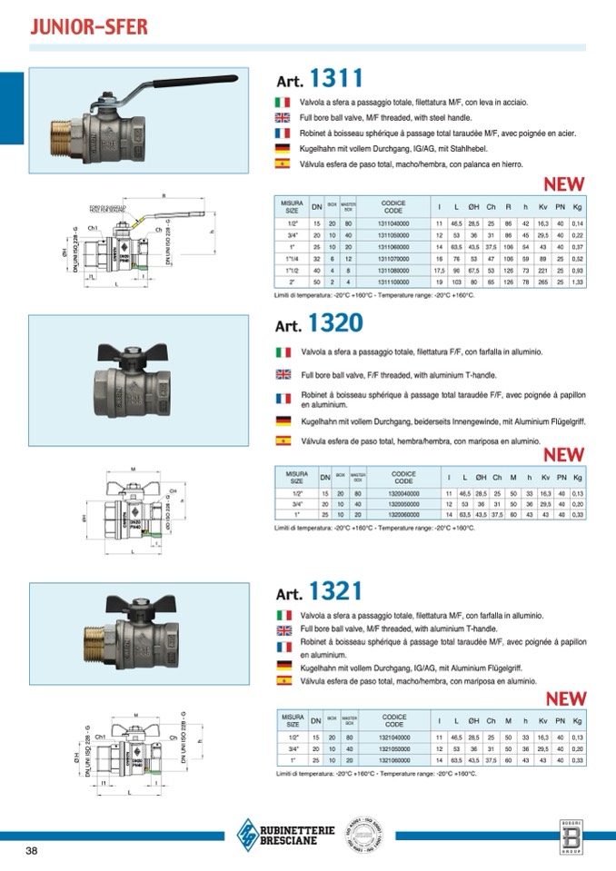 Limiti di temperatura: -20°C +160°C - Temperature range: -20°C +160°C