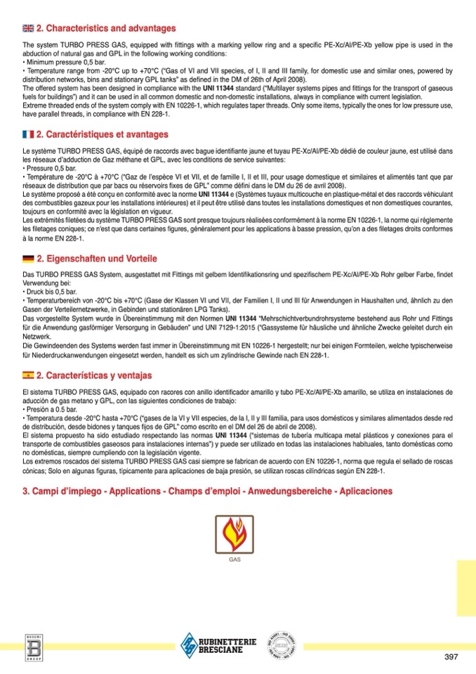 transporte de combustibles gaseosos para instalaciones internas”) y puede ser utilizado en todas las instalaciones habituales, tanto domésticas com