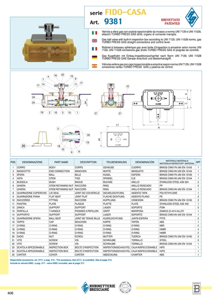 Include la valvola 938C, a pag. 217 - valve 938C included, see at page 217.