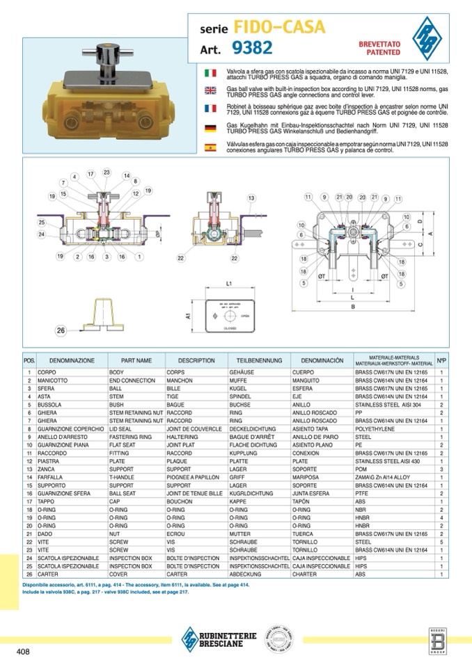 Include la valvola 938C, a pag. 217 - valve 938C included, see at page 217.