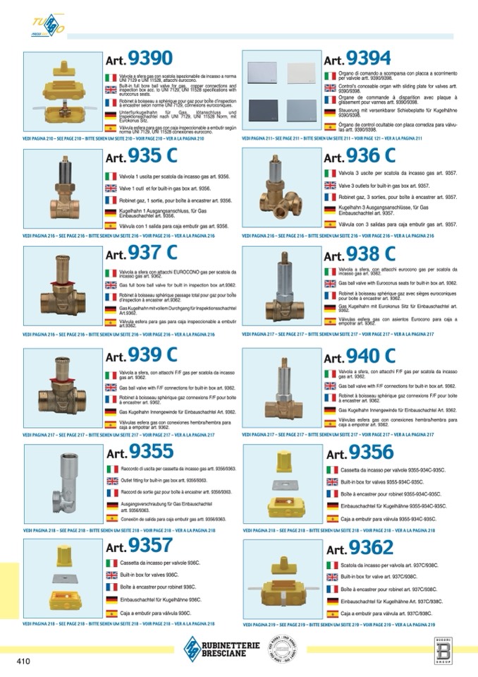 Valve 1 outl et for built-in gas box art. 9356.