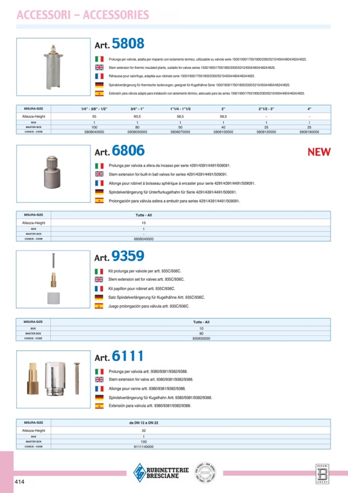 Prolunga per valvola artt. 9380/9381/9382/9388